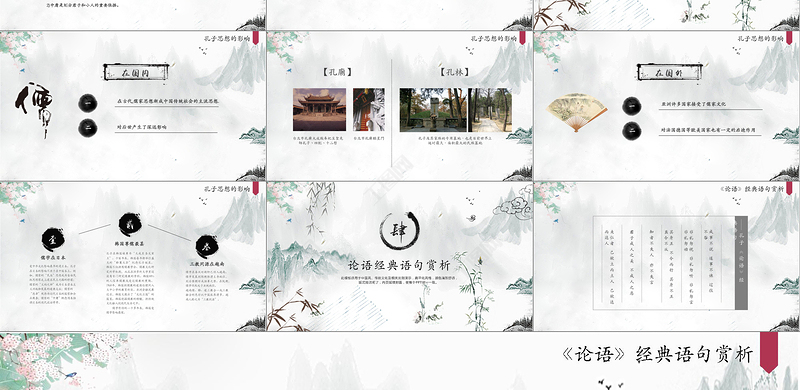 古風水墨孔子介紹PPT歷史人物介紹PPT模板