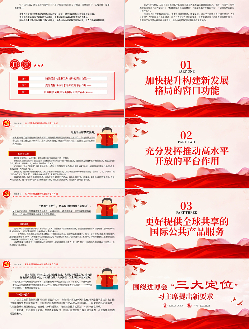 工圖網提供2023進博會PPT落實三大定位推動高質量發展新時代共享未來主題主題模板供會員免費下載。更多精彩黨課PPT素材,盡在工圖網。