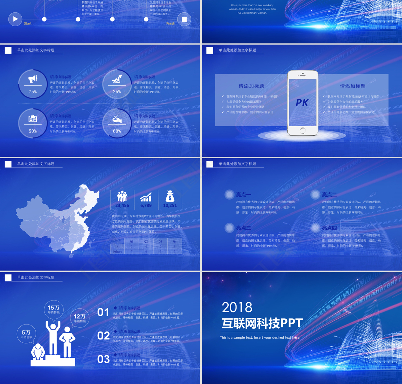 精美藍色互聯網公司科技感年終總結ppt工作計劃ppt工作總結包含