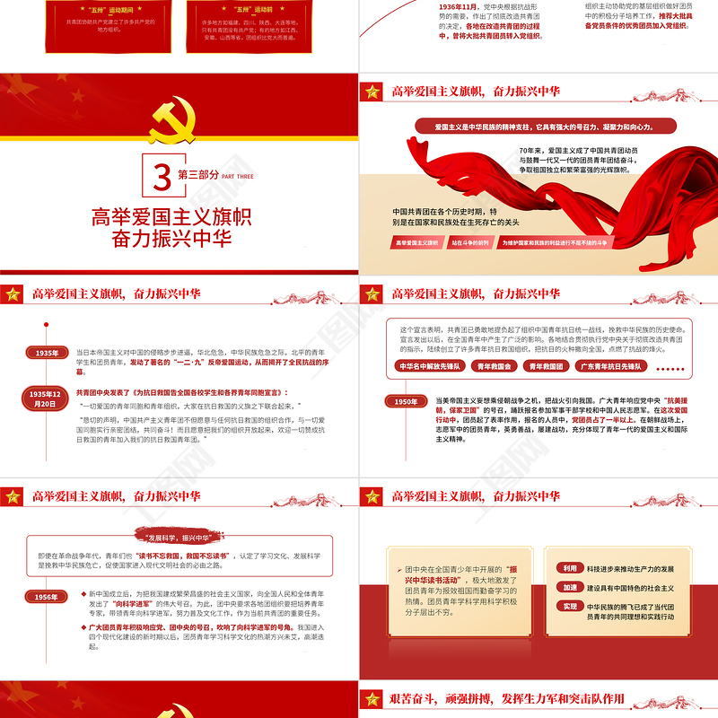 目錄/Content 1學習、宣傳和信仰馬克思主義2自覺擁護與堅持黨的領導,做黨的助手和后備軍3高舉愛國主義旗幟,奮力振興中華4艱苦奮斗,頑強拼搏,發揮生力軍和突擊隊作用5實事求是,理論聯系實際6與工農相結合,密切聯系群眾