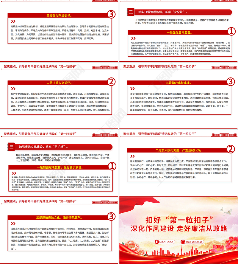 工圖網(wǎng)提供黨政風扣好“第一粒扣子”PPT年輕干部廉潔從政專題黨課供會員免費下載。更多精彩黨課PPT素材,盡在工圖網(wǎng)。