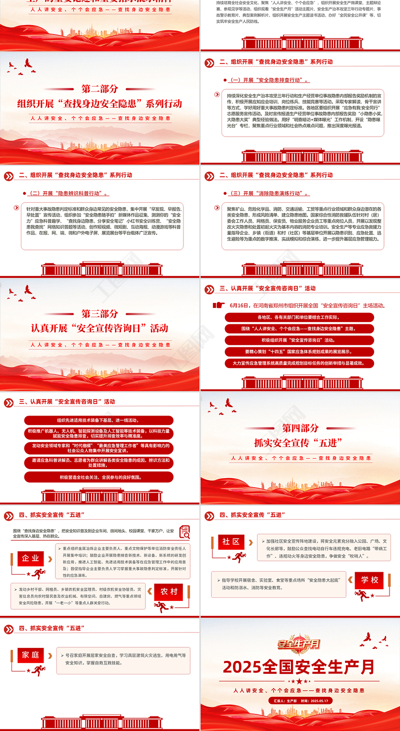 2025全國安全生產月PPT紅色創意安全生產知識匯集課件下載包含