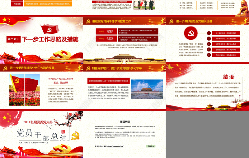 工圖網(wǎng)提供黨員干部年終黨建工作總結(jié)匯報(bào)PPT模板供會(huì)員免費(fèi)下載。更多精彩黨課PPT素材,盡在工圖網(wǎng)。