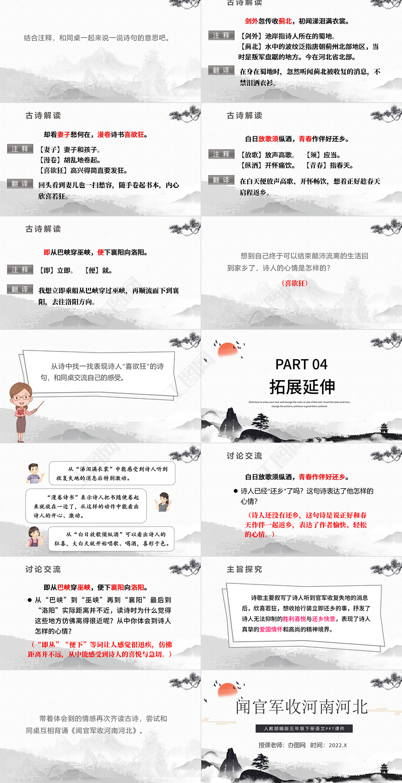 工圖網提供2022古詩三首 聞官軍收河南河北PPT第9課小學五年級語文下冊部編人教版教學課件供會員免費下載。更多精彩黨課PPT素材,盡在工圖網。