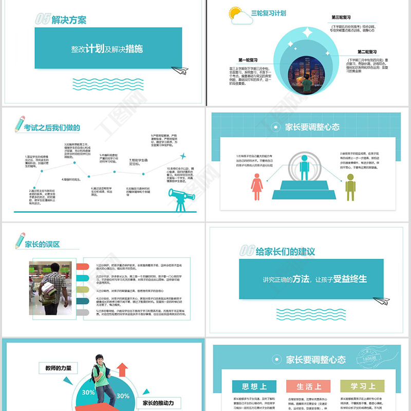 工圖網提供原創中小學生家長會月考學習計劃總結PPT模板供會員免費下載。更多精彩黨課PPT素材,盡在工圖網。