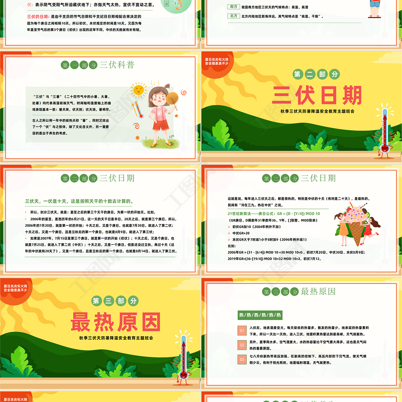 2023三伏天科普介紹PPT中國(guó)風(fēng)夏季三伏天防暑降溫安全教育主題班會(huì)課件模板下載