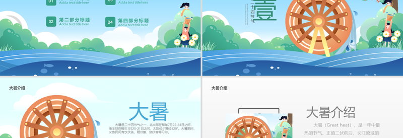 大暑節氣 農歷節氣 大暑介紹 遇見夏天 你好七月 傳統節氣 二十四節氣介紹 旅游 藍天白云 游泳 吃西瓜 水車 嬉鬧 暑假 小伙伴 ppt模板 ppt清新 大暑 二十四節氣 節氣 模板 模板ppt 模板清新 清新 清新ppt 新二十四 Array