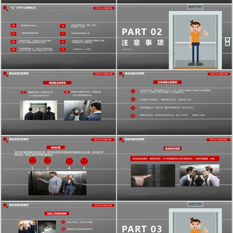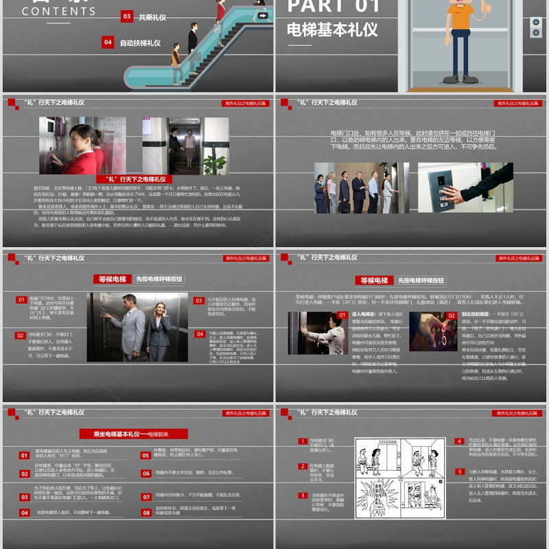 工圖網提供 簡約商務禮儀之電梯禮儀學習課件PPT模板供會員免費下載。更多精彩黨課PPT素材,盡在工圖網。