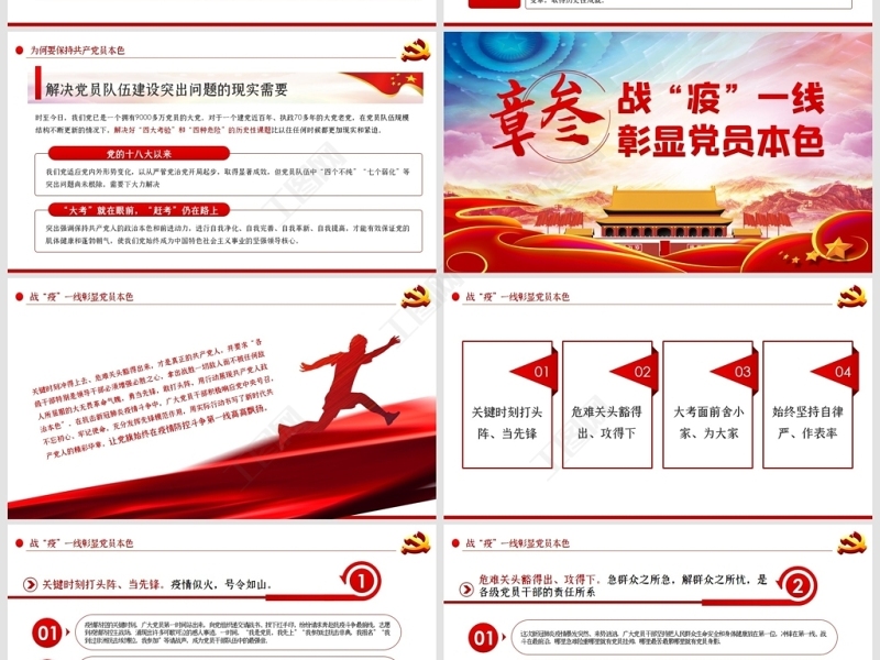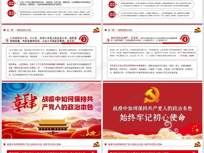 工圖網提供原創(chuàng)疫情黨課戰(zhàn)疫彰顯共產黨人政治本色爭做合格黨員黨課PPT供會員免費下載。更多精彩黨課PPT素材,盡在工圖網。