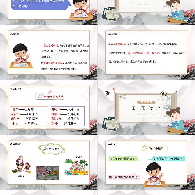 首頁 > PPT模板 > 教學課件 > 2022中華傳統節日PPT綜合性學習小學三年級語文下冊部編人教版教學課件.PPTX 【圖片、文字、動畫均可編輯】