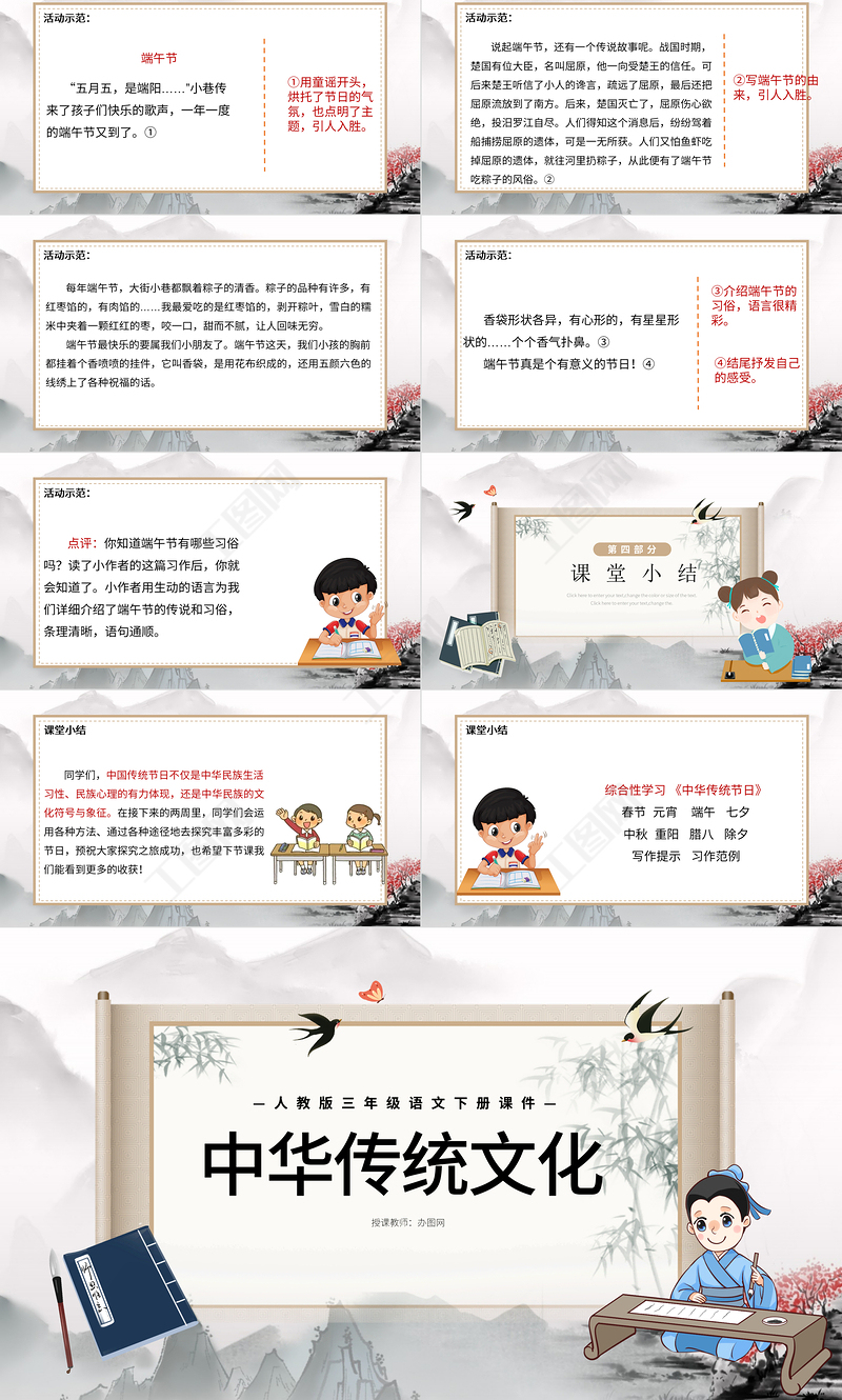 中華傳統文化授課教師:辦圖網—人教版三年級語文下冊課件—
