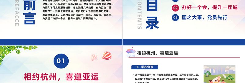 CONTENTS目 錄01相約杭州,喜迎亞運02辦好一個會,提升一座城03國之大事,黨員先行