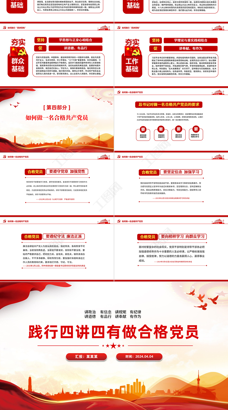 工圖網提供踐行四講四有做合格黨員PPT紅色創意黨員干部學習課件供會員免費下載。更多精彩黨課PPT素材,盡在工圖網。