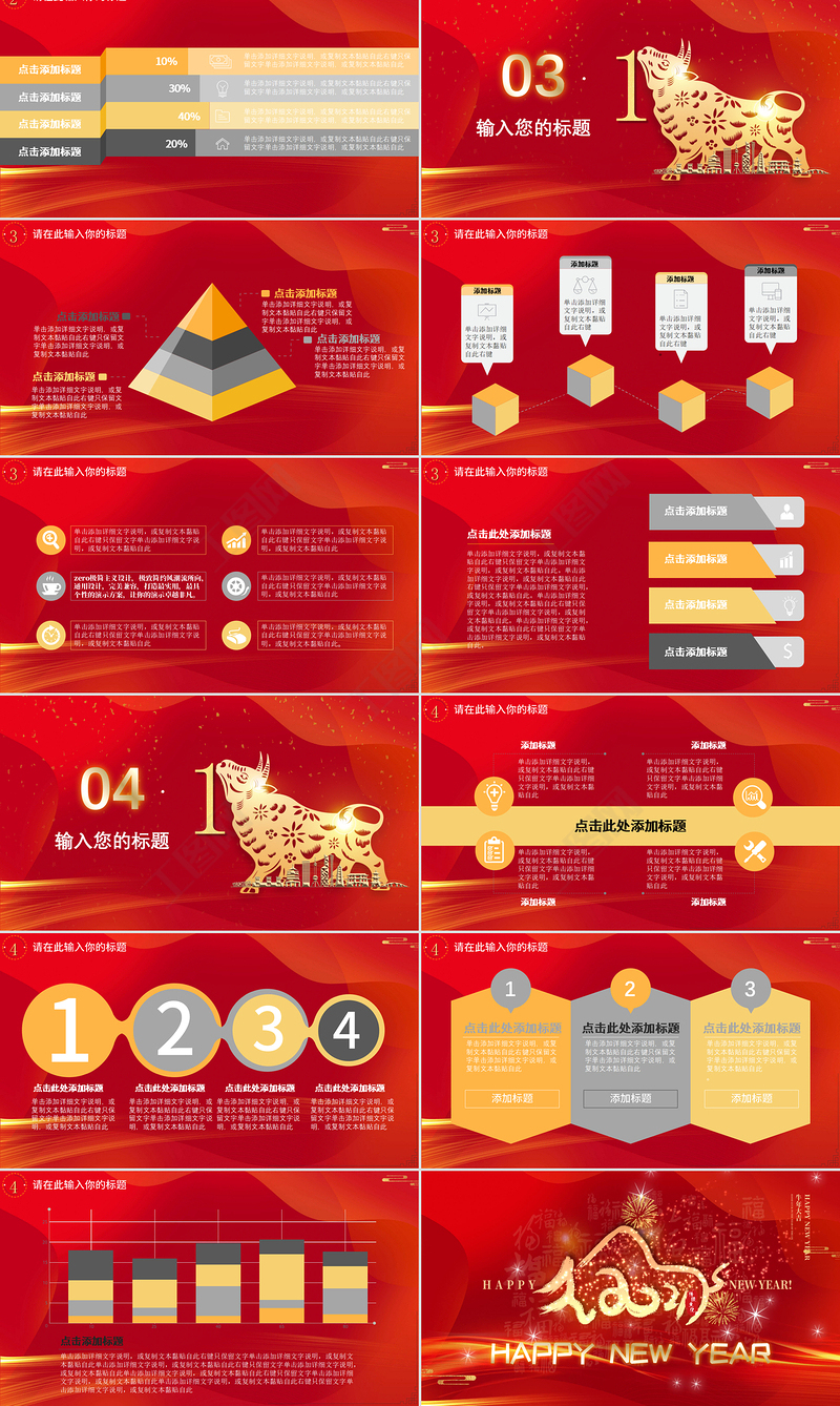 工圖網提供中國紅金牛新年快樂營銷策劃PPT模板供會員免費下載。更多精彩黨課PPT素材,盡在工圖網。