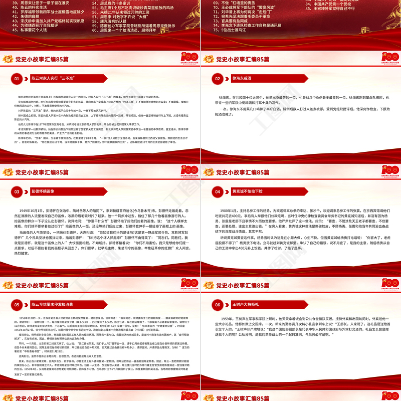 黨史小故事匯編85篇 PPT 中小學(xué)生學(xué)黨史 紅色教育 專題黨課PPT模板 黨史故事 黨史小故事 小學(xué)生講黨史 黨史故事合集 建黨100周年 黨史教育 黨史天天學(xué) Array
