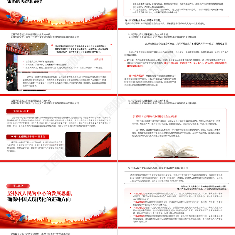 “中國式現代化,深深植根于中華優秀傳統文化,體現科學社會主義的先進本質,借鑒吸收一切人類優秀文明成果,代表人類文明進步的發展方向,展現了不同于西方現代化模式的新圖景,是一種全新的人類文明形態。”前言導讀PREFACE習近平總書記深刻指出:社會主義本質問題,是社會主義理論和實踐中的一個根本性問題,是順利推進中國式現代化至關重要的因素。 社會主義由空想到科學、由理論到實踐,從根本意義上說就是對社會主義本質的認識不斷深化和科學堅持的結果。
