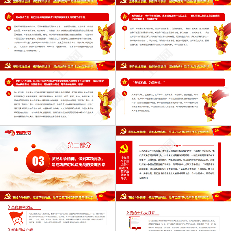 中國共產黨成功應對風險挑戰的歷史經驗PPT紅色簡約風黨員干部深入學習《決議》專題黨課 Array