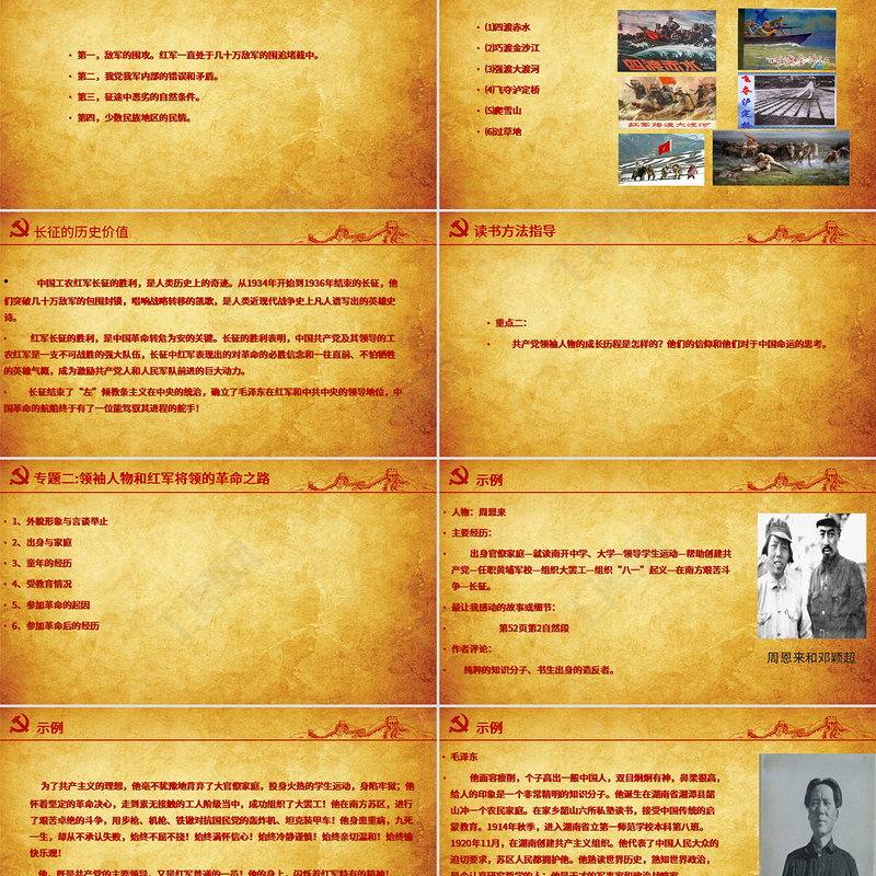 專題二:領袖人物和紅軍將領的革命之路1、外貌形象與言談舉止2、出身與家庭3、童年的經歷4、受教育情況5、參加革命的起因6、參加革命后的經歷