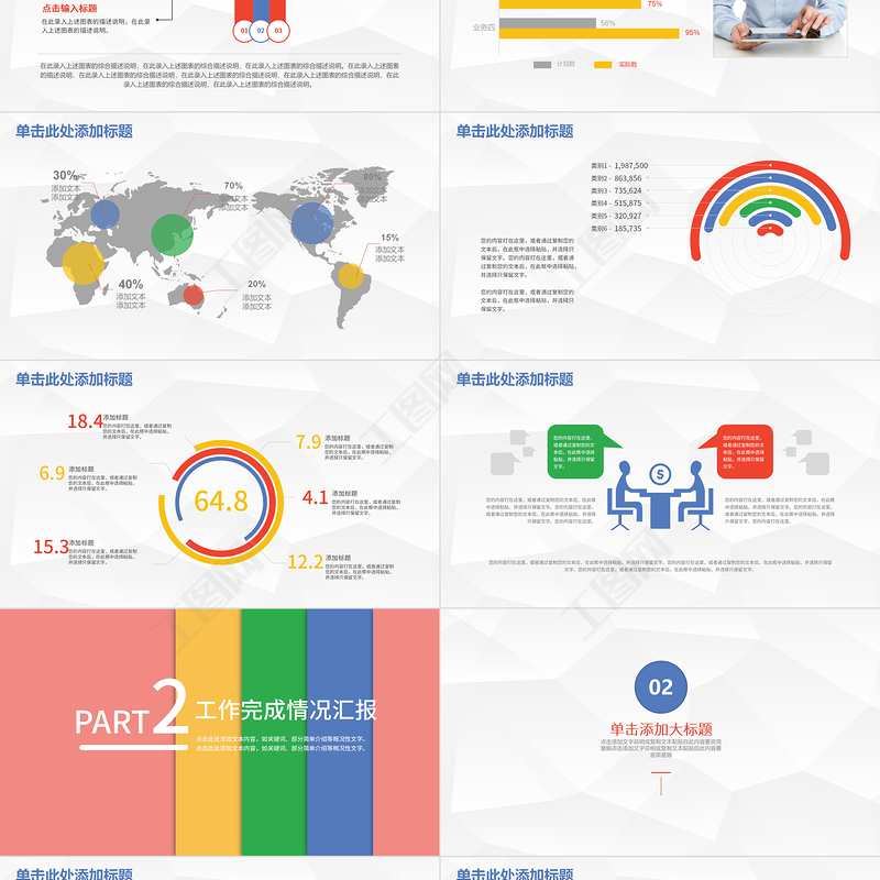PART2工作完成情況匯報點擊此處添加文本內容,如關鍵詞、部分簡單介紹等概況性文字。 點擊此處添加文本內容,如關鍵詞、部分簡單介紹等概況性文字。