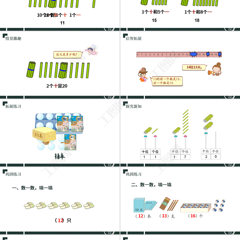 工圖網提供人教版小學一年級數學上冊第六課:11-20各數的認識(含配套教案)課件PPT供會員免費下載。更多精彩黨課PPT素材,盡在工圖網。