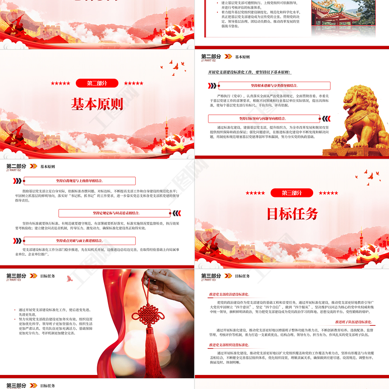 工圖網提供紅色實用2023年黨支部標準化規范化建設工作方案PPT供會員免費下載。更多精彩黨課PPT素材,盡在工圖網。