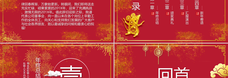 紅色,金色,中國(guó)風(fēng),中式,國(guó)潮,復(fù)古,元旦,晚會(huì),新年,頒獎(jiǎng),慶典,PPT,模板 Array