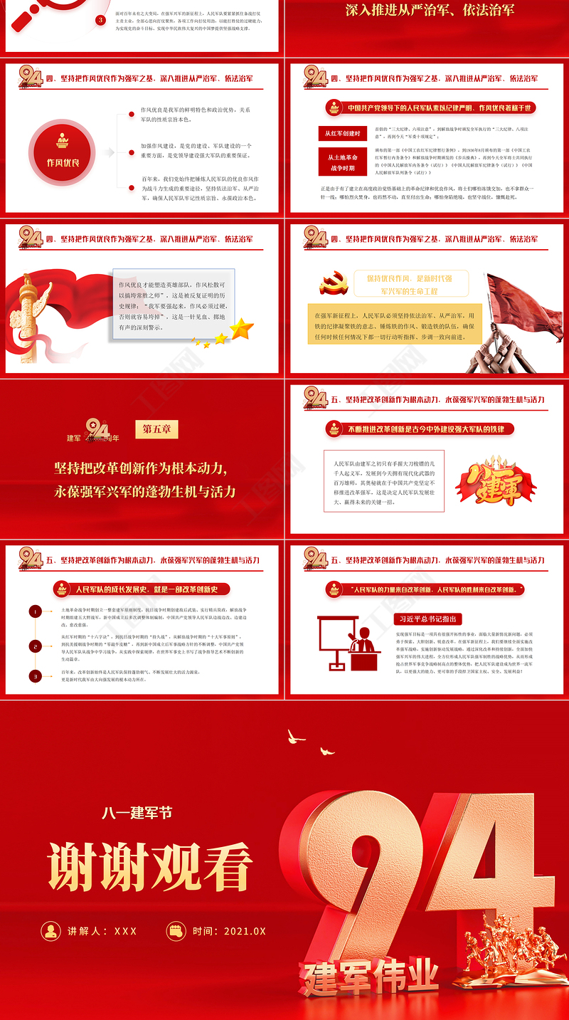 2021 黨領導建設強大人民軍隊的歷史經驗 PPT 熱烈慶祝中國人民解放軍 建軍94周年 專題黨課 模板 Array