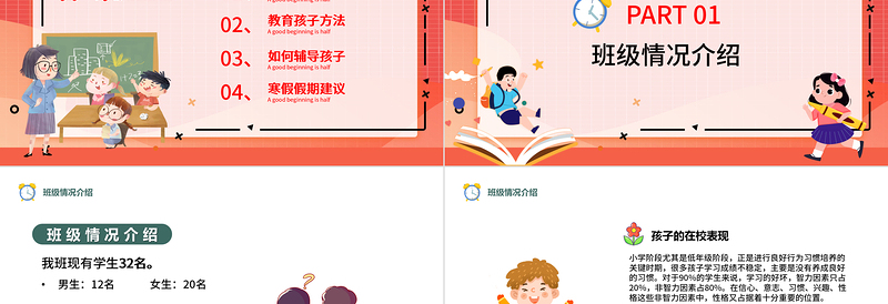 01、班級情況介紹A good beginning is half02、03、04、教育孩子方法A good beginning is half如何輔導孩子A good beginning is half寒假假期建議A good beginning is half