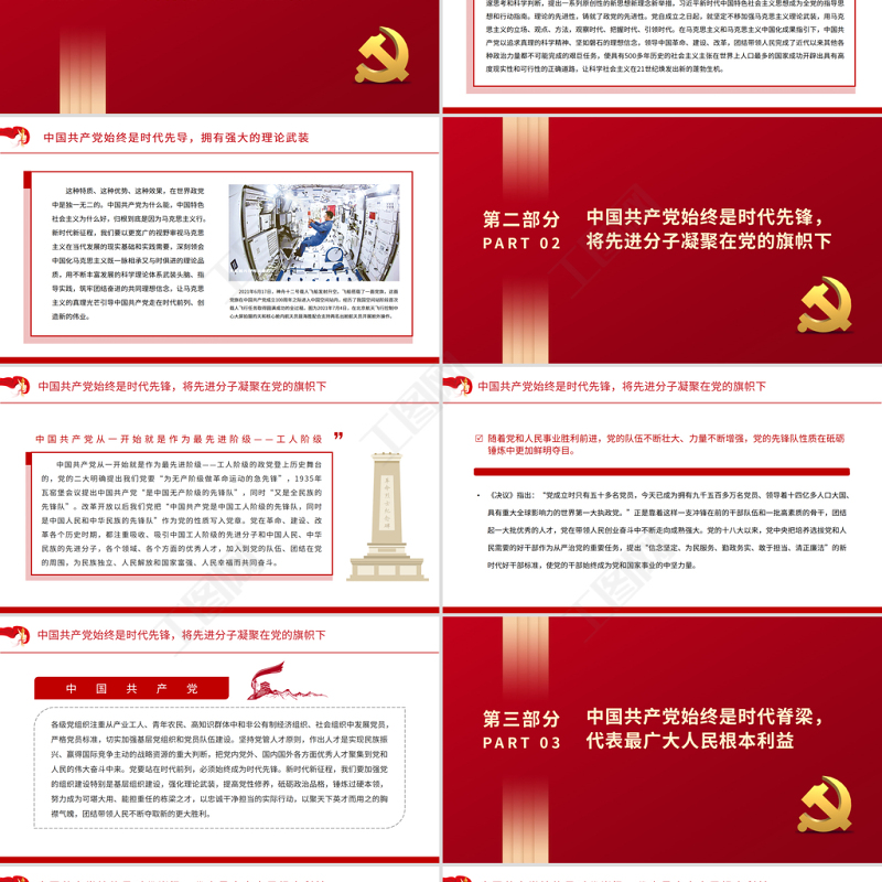 中國共產黨始終是時代先導,擁有強大的理論武裝中國共產黨始終是時代先鋒,將先進分子凝聚在黨的旗幟下中國共產黨始終是時代脊梁,代表最廣大人民根本利益中國共產黨始終葆有時代勇氣,鍛造出自我革命的品格中國共產黨始終彰顯時代風范,勇立時代潮頭不斷創新創造中國共產黨始終引領時代,開創中國之治新境界目錄CONTENTS