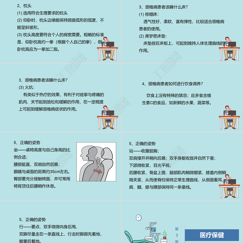 目錄 CONTENTSChp1 頸椎病如何自我判斷Chp2 預(yù)防頸椎病的重要幾點Chp3 醫(yī)療保健