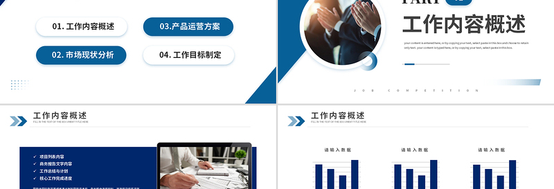 01. 工作內(nèi)容概述02. 市場(chǎng)現(xiàn)狀分析03.產(chǎn)品運(yùn)營(yíng)方案04. 工作目標(biāo)制定