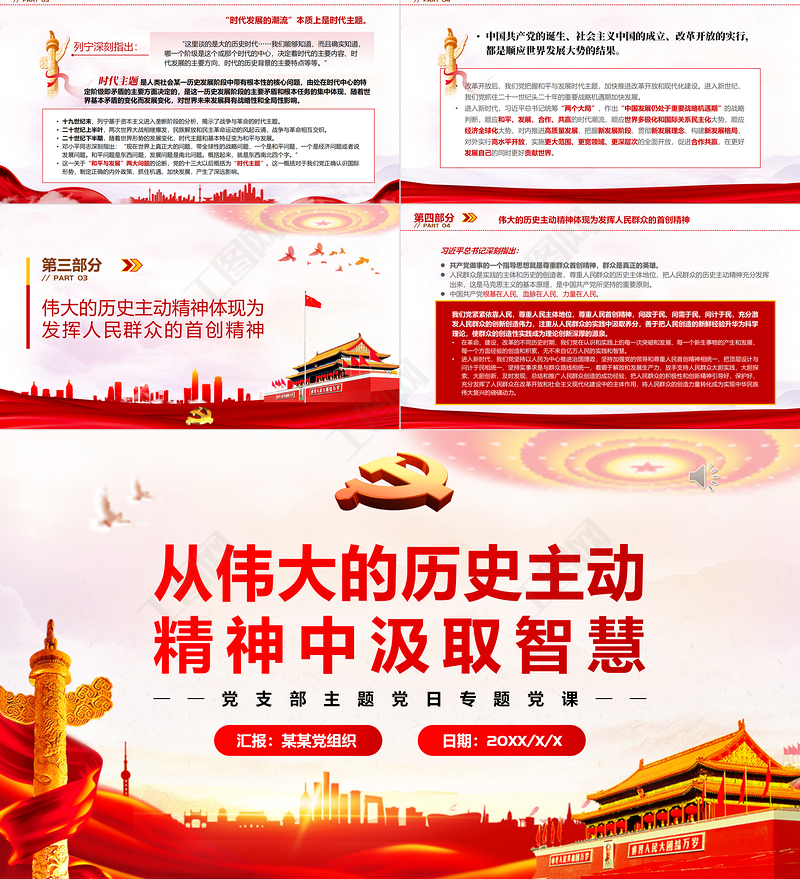 從偉大的歷史主動精神中汲取智慧PPT黨政風(fēng)黨支部主題黨日專題黨課 Array