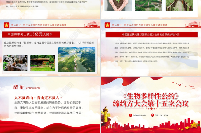 生物多樣性公約締約方大會第十五次會議PPT紅色黨政風共建地球生命共同體生態文明黨課課件