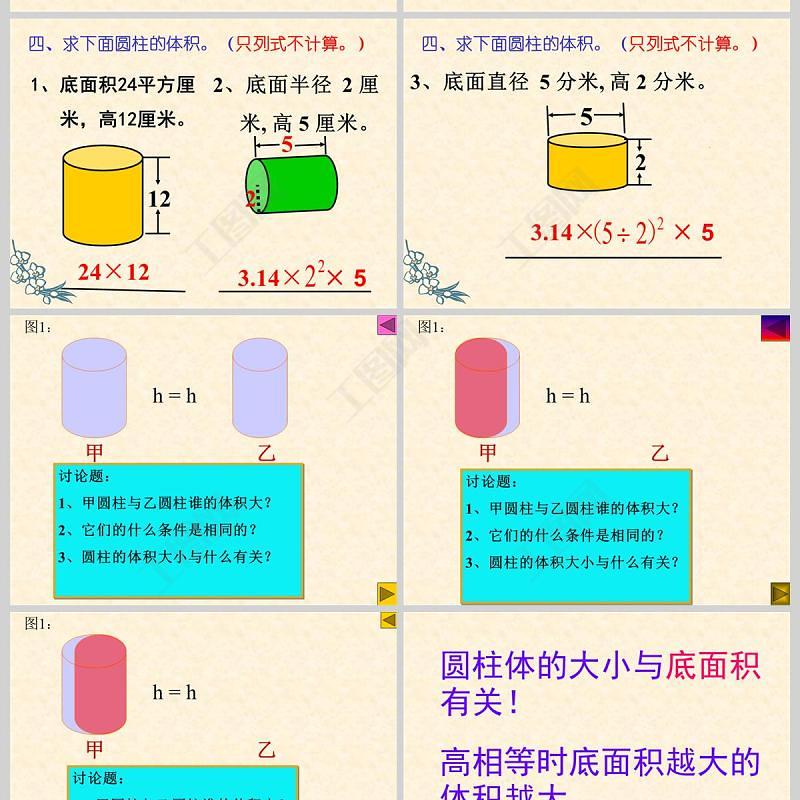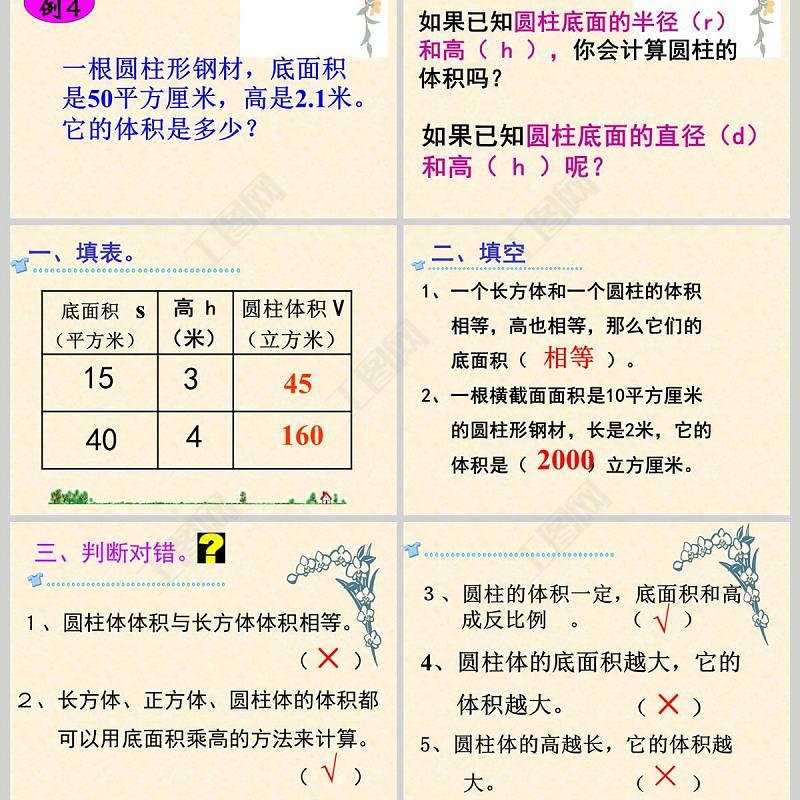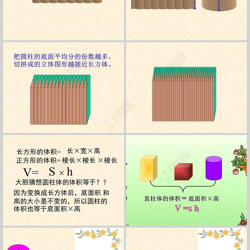 ,九年義務教育六年制小學數學課件第十二冊圓柱的體積PPT模板 Array