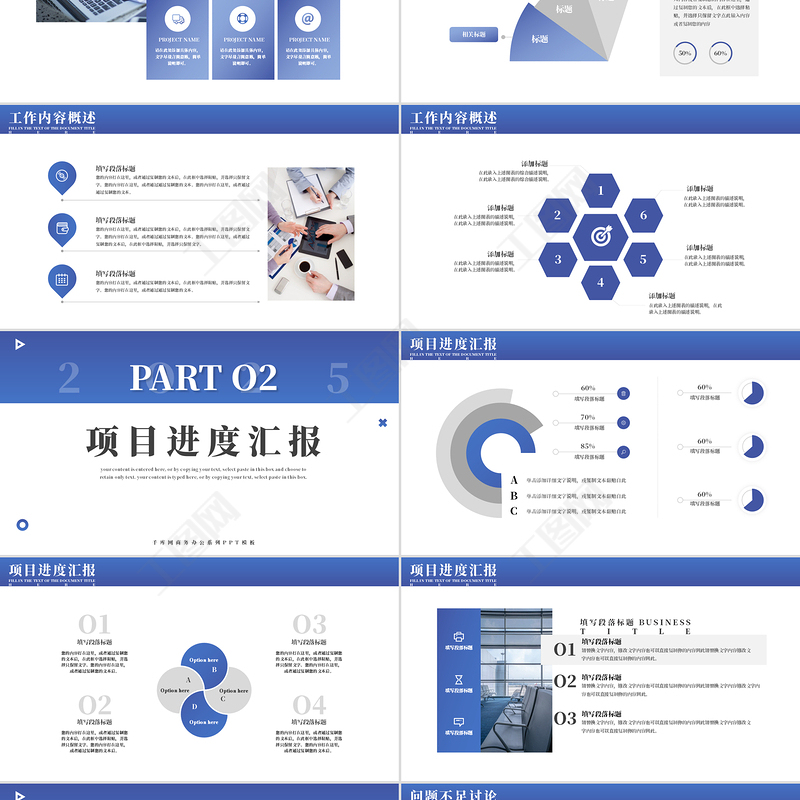 2020年藍色穩重大氣簡約商務商業計劃公司介紹通用ppt模板包含