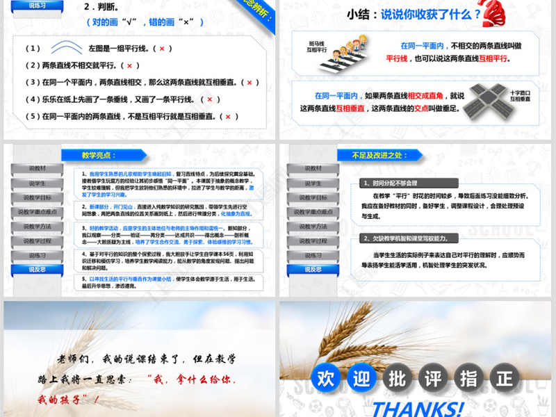 說教學方法說教學過程說練習說反思說學生說教材說教學目標說教學重點難點正確理解:理解平行與垂直概念的本質特征。等概念。