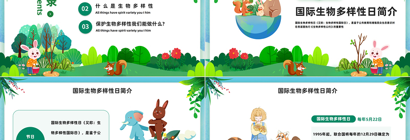 2023國際生物多樣性日PPT卡通插畫風萬物皆有靈多樣你我他國際生物多樣性日知識宣講課件模板