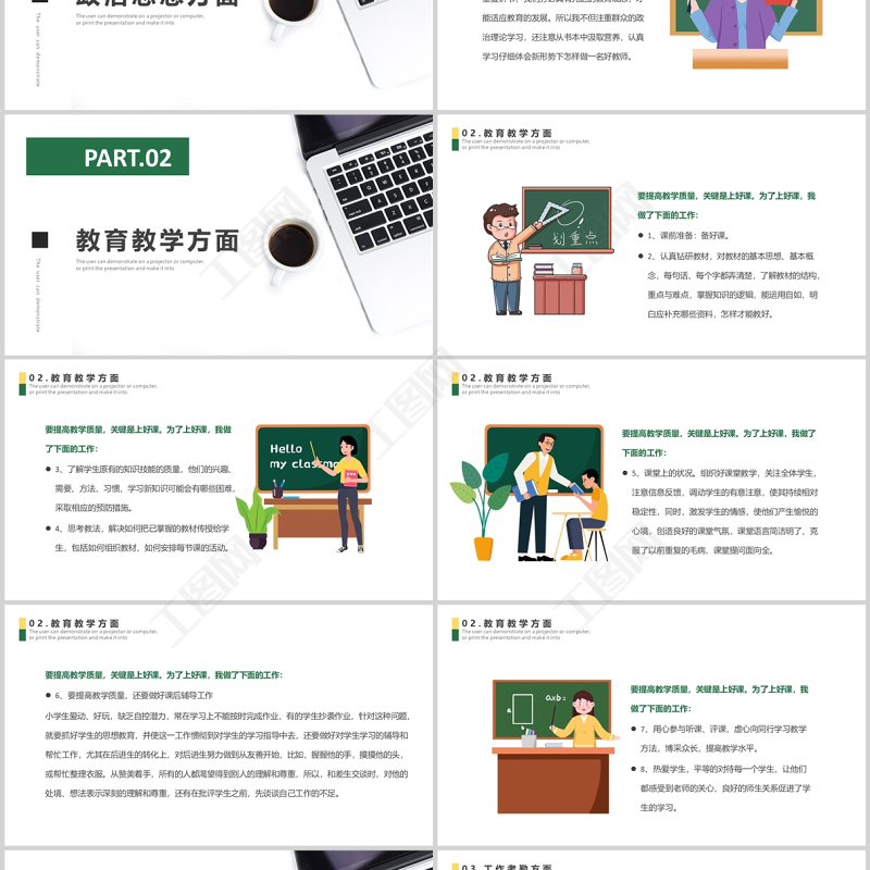 工圖網提供2022教師年終總結PPT綠色卡通風年終匯報工作總結通用模板供會員免費下載。更多精彩黨課PPT素材,盡在工圖網。