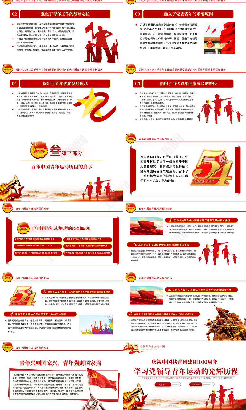學習黨領導青年運動的光輝歷程PPT紅色大氣風中國共產黨建黨一百周年系列專題黨課課件模板下載 Array