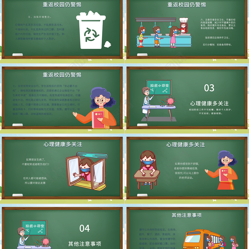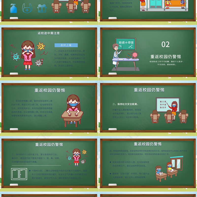 2021年 中小學校 開學防疫教育 PPT 防疫知識 宣傳教育 模板下載 Array