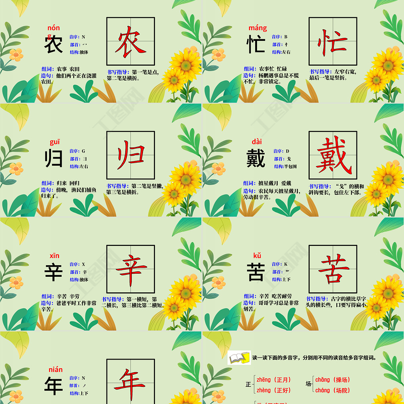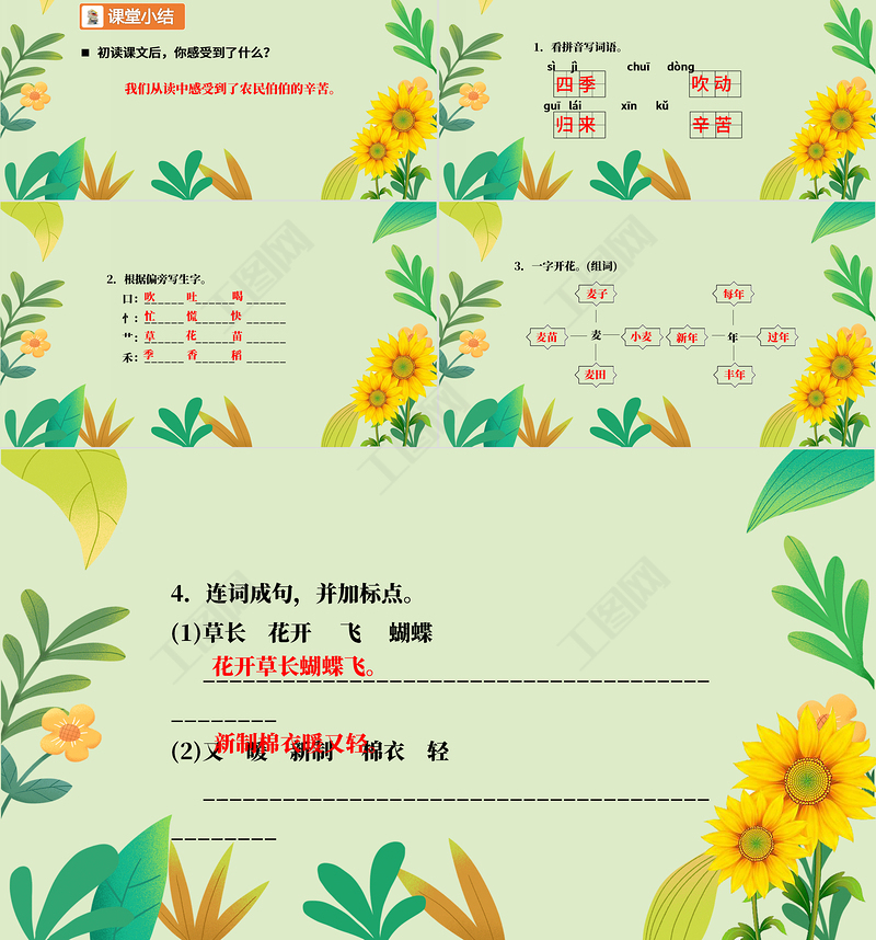 3.一字開花。(組詞)年麥麥子麥苗小麥麥田每年新年過年豐年