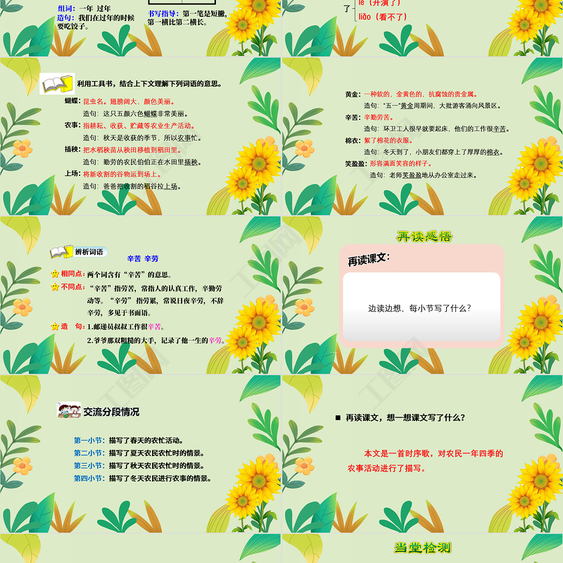 本文是一首時序歌,對農(nóng)民一年四季的農(nóng)事活動進行了描寫。再讀課文,想一想課文寫了什么?
