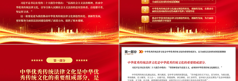 2023傳承中華優秀傳統法律文化為全面依法治國提供豐厚滋養PPT紅色精美風黨員干部學習教育專題黨課黨建課件 Array