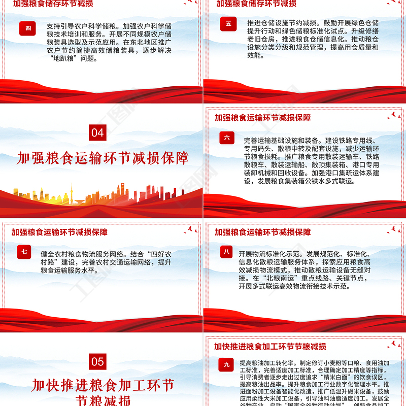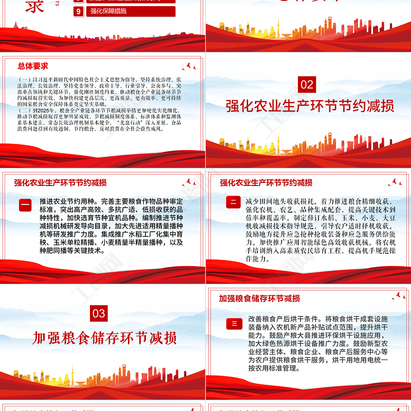 總體要求強化農業生產環節節約減損加強糧食儲存環節減損123加強糧食運輸環節減損保障4加快推進糧食加工環節節糧減損5目錄CONTENTS