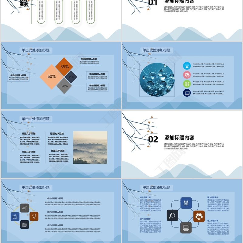 藍(lán)色,簡(jiǎn)約,二十四節(jié)氣,之霜降,PPT模板 Array