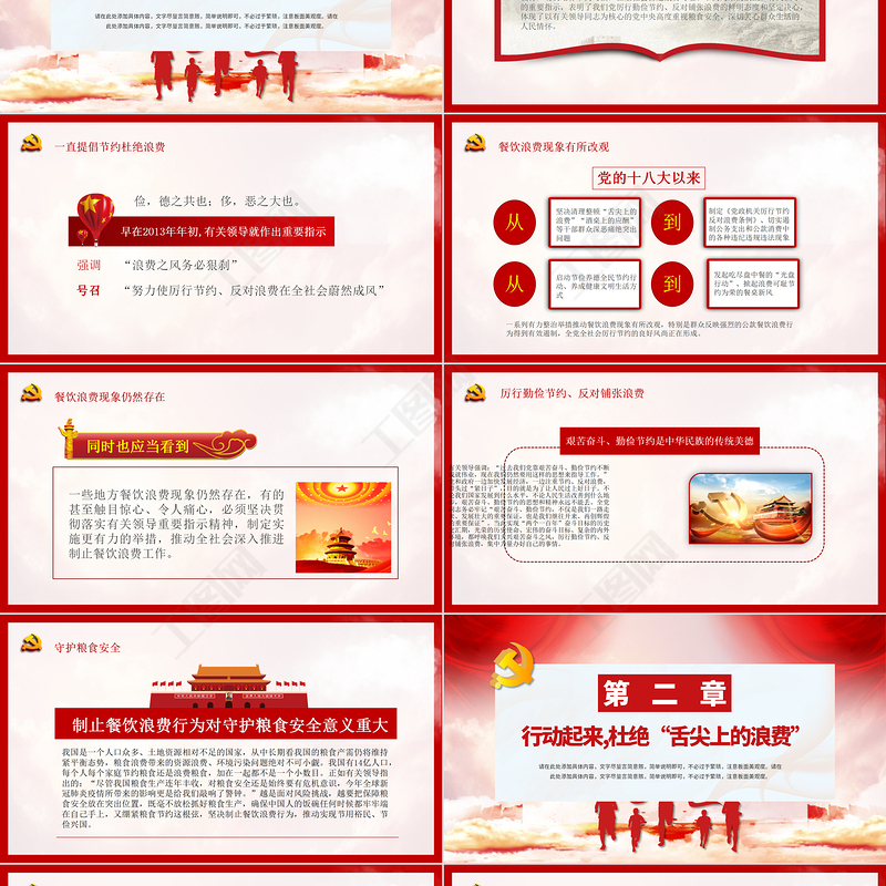 工圖網提供紅色黨建風杜絕舌尖上的浪費堅決制止餐飲浪費行為安全黨課PPT模板供會員免費下載。更多精彩黨課PPT素材,盡在工圖網。