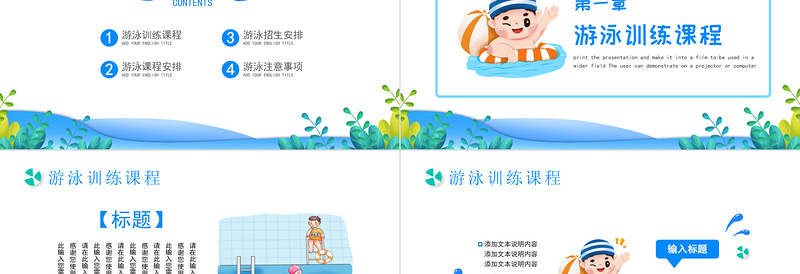 2022游泳健身PPT藍色卡通風暑假游泳培訓招生課件模板 Array