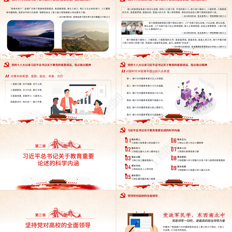 目錄concents 黨的十八大以來總書記關于教育的重要講話、指示批示精神 總書記關于教育重要論述的科學內涵 堅持黨對高校的全面領導 建設高質量職業教育體系