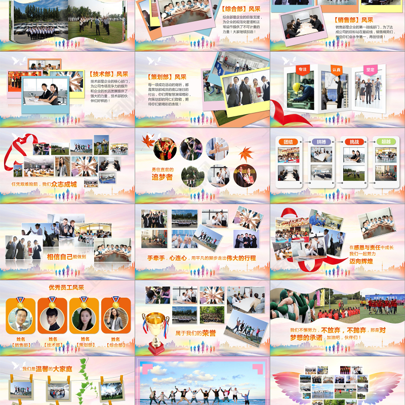 優秀員工風采 姓名【銷售部】 姓名【技術部】 姓名【策劃部】 姓名【綜合部】