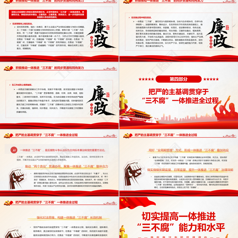 工圖網提供切實提高一體推進“三不腐”能力和水平PPT紅色簡約風廉政廉潔專題黨課供會員免費下載。更多精彩黨課PPT素材,盡在工圖網。